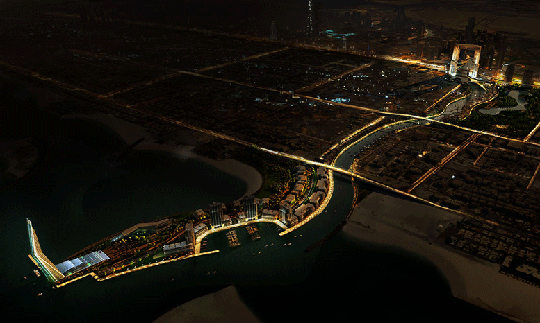 “The Canal stretches 3.2 km from the Business Bay Canal up to the Arabian Gulf via the Sheikh Zayed Road (SZR), Al Wasl Road and Jumeirah Road. Projects to be constructed on the Water Front will be served by modern water transport means, and result in improved quality of water in the Dubai Creek.”