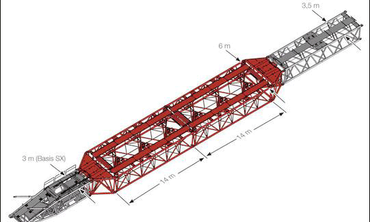 To install the 6m-wide lattice sections in the boom, an extension adapter from 3m to 6m is provided on the pivot section for the turntable. A second adapter reduces the 6m width to 3.5m at the top. With economy as the goal in the design, operators only have to buy the 6m-wide sections and the adapters in addition to the SX system, Leibherr said.
