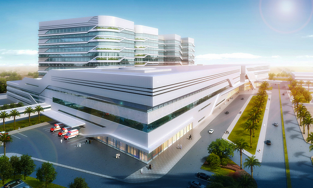 The project includes a 1,234 bed hospital, a dental facility with 115 treatment rooms and a regional health administration building. It also boasts a dedicated women’s centre, trauma centre, 32 operating suites including two hybrid operating rooms, a hybrid CT operating suite and a hybrid MRI operating suite. The outpatient facilities includes 22 departments with 135 clinics with state of the art equipment including a 10 seat hyperbaric chamber. Other service buildings include a public car park and staff car park, both accommodating 5,000 cars and two emergency shelters, each for 300 people.