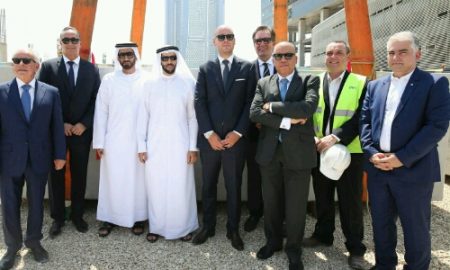 Facility’s form and illuminated façade is designed to complement the waterfront promenade at Yas Bay